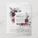 Burgunder Pflaumenrotweine und dunkle lila Blütenhochzeit mit Akzenten von Rosa Rosa, die auf Ihre Veranstaltungsspezialitäten zugeschnitten sind. Ideal für jede Art von Thema oder Gartenhochzeit. Ideal für jede Art von Thema oder Gartenhochzeit. Das Foto auf der Rückseite ist optional. Wenn Sie es lieber entfernen möchten, scrollen Sie unten in "Personalisieren Sie diese Vorlage" und klicken Sie auf "Bearbeiten mit dem Entwurfswerkzeug". Im Entwurfswerkzeug können Sie Text- oder Designelemente bearbeiten, skalieren, löschen oder verschieben, die Sie wünschen.