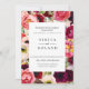 Schöne böhmische Blume, Federn und Blattwerk in zauberhaften Bordeaux, Gelb, Violett, Rosa, Rot, Creme und Grüntöne, Hochzeitseinladung. Anpassen von Text, Schriftart, Farbe und Größe. Backing Farbe, in Smaragdgrün dargestellt, kann angepasst werden.