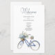 Dieses inspirierte Böhmische Hochzeitsprogramm umfasst ein blaues Fahrrad, das einen Korb mit wunderschönen blauen und weißen Blume trägt, und ein Paar Livebirds auf dem Platz. Schön, einfach und elegant. Dieses Design wird einfach mit Ihren Informationen personalisiert und mit den Optionen für Schreibwaren und Accessoires ergänzt. Besonders schön für Frühjahr- und Sommerhochzeiten. Basierend auf einer originalen Aquarellfarbe von © Lisa Audit Art, umgeben Sie sich mit herzerwärmender Kunst.