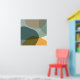 Dieses abstrakte geometrische Design besticht durch seine Bio Formen in einer Farbpalette aus Braun, aquamarinem Blau und Senfgelb.