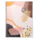 Personalisiertes Notizbuch mit einem Namen und einem abstrakten Boho mit rosa, orangefarbenen und braunen Mustern.