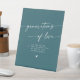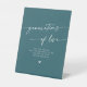 Dieses aquamarin blaue Hochzeitszeichen der Liebe ist perfekt für eine minimalistische Hochzeit. Der kühne, dunkeltürkisfarbene Juwelenton des modernen böhmischen Designs zeichnet sich durch eine einfache rustikale Kalligraphie mit einem einzigartigen und dennoch klassischen Stil aus. Das Zeichen lautet: Generationen von Liebe. Alles, was wir sind, alles, was wir hoffen zu sein, schulden wir unseren liebevollen Familien.