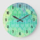 Diese modische boho Art-Wanduhr kennzeichnet geometrische Formen des weißen Pfeiles auf einem blauen, grünen und gelben Aquarellhintergrund.