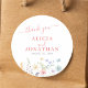 Elegant schlicht Frühling Sommer rustikale florale botanische Aquarellgarten Weiß danke Ihnen Hochzeitsaufkleber Vorlage mit bunten Wildblumen und eine schicke rosa Kalligraphie Skript. ++++++++++++++ Einfach mit Text, Namen und Datum personalisieren! +++++++++++++ Geeignet für rustikale Hochzeiten im Land.
