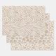 Boho Watercolor Jungle Safari Wrapping Paper Set avec trois feuilles de papier d'emballage. Spots, bandes Zebra, et tirage de girafes.