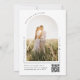 Hochzeitseinladung mit einem einfachen Bogenrahmen und Design. Rückseite mit Foto und QR-Code für UAWG. Passen Sie Ihre Daten an. Klicken Sie auf "Klick um weitere Anpassungen vorzunehmen", um den Stil, die Größe oder die Farbe des Schriftartes zu ändern.