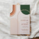 Moderne Hochzeitseinladung mit Bogenformen in Terrakotta, Rost, gebrannter Orange und dunkelgrünen Smaragdtönen. Sammlung: https://www.zazzle.com/collections/boho_arch_abstract_wedding_collection-119061662657911589