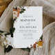 Elegante Herbstaufenthalte mit Aquarellfarben und Grün in abgedämpften Herbstfarben von Elfenbein, Orange, Senfgold, Olivgrün, staubiger Rose und Braun. Ihre Hochzeitsdetails werden im Zentrum des Designs mit modernen Schriftzeichen auf weißem Hintergrund dargestellt. Die Herbst-Blumen-Hochzeitseinladungen kehren zu einem reichen olivgrüne Aquarell-Hintergrund. Entworfen, um mit unserer Boho Herbst Floral Hochzeitskollektion zu koordinieren.