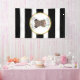 Eine Babyduschenfahne, die eine Illustration eines Babybären trägt eine Blumenkrone über einem Schwarzweiss-Streifenhintergrund kennzeichnet. Personifizieren Sie den Text.