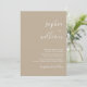 Cette faire-part de mariage beige moderne présente un design minimaliste avec des tons désert de beige boho terreux et une typographie moderne et propre. Le beige du Boho est un ton doux, saturé, chaud et neutre. Une suite mariage de coordination est disponible.
