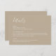 Cette carte de détails de mariage beige boho moderne présente un design minimaliste avec une couleur beige boho terne et une typographie moderne et propre. La suite de mariage de coordination est disponible.