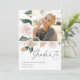 Élégant faire-part de graduation de photo florale présente une photo carré encadrée de fleurs d'aquarelle et de feuillage dans des tons de pêche, blanc, ivoire et vert sauge inspirés du désert de boho. Personnalisez avec le nom de votre diplômé, l'année de classe et l'école. Ajoutez un message personnel à l'arrière, ainsi qu'une photo supplémentaire.