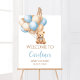 Boho Blue Balloon Bear Baby Dusche Willkommen Poster