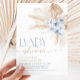 Une jolie invitation à la floraison boho pour votre Baby shower dans les tons bleus et neutres.