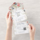 MIT ODER OHNE QR-CODE IM UAWG BEREICH ERHÄLTLICH. Die Blume ist staubblau, rosa und rot, die Vegetation auf weißem Grund ist hier sehr schön. Personalisierte All-In-One-Einladungen sind eine einzigartige Kombination aus einer schön gedruckten, maßgeschneiderten Einladung und einer leicht zu abreißenden perforierten UAWG-Postkarte. Und sie sind so einfach zu bedienen! Man falte einfach, dann Siegel die Rückklappe mit den drei beiliegenden Klarkleben, und Post. Und wenn Ihre Gäste Ihre persönliche Einladung erhalten, reißen sie einfach die perforierte RSVP Karte ab und lassen sie in der Mail an Sie zurück!