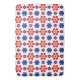 This bath mat features a beautiful colorful floral pattern of blue, purple and red stylized daisies against a white background; perfect for adding a touch of retro cuteness to your bathroom.