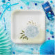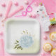 hübsche botanische Teller mit blauen Blumen, grünen Blätter und goldenen Blumengegenständen. Die Einzelheiten des Glitzer werden simuliert. Für weitere Informationen klicken Sie bitte auf die obige Sammlung oder kontaktieren Sie mich