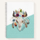 Coole moderne Wasserfarben boho Blume & Feathers Bull Schädel geometrische Design. Der geometrische Hintergrund ist weiß und türkis.