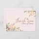 Boho Botanischer Garten Hochzeit Dankeschön-Karte. Diese stilvolle und elegante Hochzeitskarte mit Watercolor Wilde Blume, Blätter, Libellen in weicher Aquarellfarbenpalette von pink, blau gelb und grün . Ideal, um Ihren Gast nach dem Frühling, Sommer oder Hochzeiten im Herbst Finden Sie passende Artikel in der Blume und Dragonfly Collection.