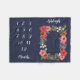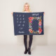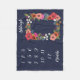 Navy blaue Fleece Decke mit einem Blumenrahmen, in dem Sie Ihr Baby legen können Mädchen und nehmen monatlich Meilenstein Fotos. Der Blumenrahmen ist mit Rose, Gänseblüten und Stiefmütterchen in Korallen, Rot, Orange, Weiß und Hot Rosa gestaltet. Fügen Sie Ihrem Baby den Namen in einem schönen Kalligrafiebeschreiben hinzu.