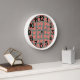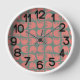 Diese Wanduhr hat ein boho Design von Korallen Blume wiederholt sich über das Design auf einem Feld von grün.