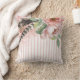 Dieses reizende, weibliche Dekorateurkissen hat einen boho Flair mit den rosa und weißen Streifen und den großen rosa Blumen mit Federn auf der Front und der Rückseite.