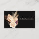 Eine trockene Blume mit cremefarbenen, bräunlichen und braunen Blätter, cremefarbenen Rose und beigefarbenen Gräsern auf schwarzem Hintergrund schafft eine schöne Visitenkarte für Innenarchitekten oder Floristen. Die Rückseite ist im selben Cremetaton gehalten, mit weiteren Informationen in schwarz. Beruflich, auffällig und trendig!