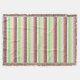 Niedliche weißliche Decke mit rosa, violett, braun, bordeauxroten und salzgrünen Polka-Punkten und Streifen-Mustern. Erdige warme Farben.