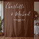 Boho Brown Script Minimalist Wedding Backdrop Wandteppich