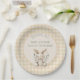 Fügen Sie Ihrer Babydusche eine Touch Charme und Laune hinzu mit diesen zauberhaften Boho Bunny Neutral Baby Shower Paper Tellern! Diese Teller mit einem süßen Hasen umgeben von sanften Aquarellfarben in erdigen, geschlechtsneutralen Tönen sind die perfekte Ergänzung zu einem Boho-, Wald-, rustikalen oder minimalistischen Babyduschthema. Diese stilvollen und praktischen Teller machen es möglich, Snacks, Kuchen oder Mittagessen zu sich zu nehmen, während Sie Ihre Tischdekoration wunderschön miteinander verbinden. Passen Sie sie mit dem Babynamen, dem Duschdatum oder einer kurzen Nachricht an, um ein unvergessliches Detail zu schaffen, das Ihre Gäste in Liebe setzen werden