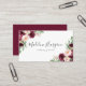 Elegante, blumengeschmückte Visitenkarten mit einem Blumenstrauß in Rosa und Bordeaux, ergänzt durch grüne Blume. Personalisieren Sie die Vorderseite der floralen Aquarellkarte, indem Sie Ihren Namen und den Titel Ihres Jobs hinzufügen. Die Visitenkarte kehrt zurück, um Ihre Geschäftsdaten wie Adresse, Website und E-Mail-Adresse auf einem soliden burgundischen Hintergrund darzustellen. Die perfekte Visitenkarte für Veranstaltungsplaner, Hochzeitsplaner, Floristen, Blogger und vieles mehr!