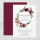 Mit unseren eleganten, bordeauxroten und blühenden Einladungen laden wir Sie zu einer stilvollen Hochzeit ein. Die Einladung zeigt Ihre Namen, umgeben von einem runden Rahmen aus rosa und bordeauxfarbenen Blume, ergänzt durch grünes Blattwerk mit Ihren Hochzeitsdetails unten. Personalisieren Sie die Einladungen, indem Sie Ihren Namen, Ihr Hochzeitstag, Ihre Zeit, Ihren Ort und Ihre Empfang-Informationen hinzufügen. Die Einladung kehrt zu einem soliden bordeauxfarbenen Hintergrund zurück.