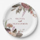 Boho Burgundy Rose fallen florale Hochzeitsmonogramm Papier Teller.