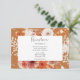 Diese Hochzeitsempfangskarte ist mit einem verbrannten orangen Rost, Pfirsichrot und cremefarbenem Blumenrahmen ausgestattet. Die grüne Farbe Weiß umschließt einen weißen Bogen auf einem orangefarbenen Rosthintergrund. Ein Monogramm rundet das einfache, aber elegante Aussehen dieser Einladung ab. Diese Karte ist Teil der Boho Burnt Orange Fall Floral Arch Monogram Wedding Suite der Karten erstellt von Simply Farmhouse Press.