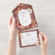 AUCH MIT EINEM QR-CODE, DER IM UAWG BEREICH AUSGEWÄHLT WERDEN KANN, ODER OHNE AUSWAHL DES ABENDS. Dieses Design zeichnet sich durch einen verbrannten orangefarbenen Rost, Pfirsich, Braun und cremefarbenen Wasserfall boho Blumenstrauß Rahmen auf einem Not leidenden Rost Hintergrund. Personalisierte All-In-One-Einladungen sind eine einzigartige Kombination aus einer schön gedruckten, maßgeschneiderten Einladung und einer leicht zu abreißenden perforierten UAWG-Postkarte. Und sie sind so einfach zu bedienen! Man falte einfach, dann Siegel die Rückklappe mit den drei beiliegenden Klarkleben, und Post. Und wenn Ihre Gäste Ihre persönliche Einladung erhalten, reißen sie einfach die perforierte RSVP Karte ab und lassen sie in der Mail an Sie zurück!