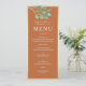 Dieses Hochzeitsmenü besticht durch ein rustikales und dennoch elegantes Design und verbindet den bohligen Charme mit einer botanischen Touch. Die mit Aquarell-Eukalyptusgrün und fließender moderner Kalligraphie-Schrift geschmückte Unterkunft zeigt eine Terrakotta-verbrannte Orangenpalette und goldene Akzente, die Ihnen ein ruhiges und raffiniertes Ambiente verleihen.