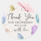 Dieses Design besticht durch eine zarte Tanzhandmalerei mit bunten Schmetterlingen und eine reizvolle Kombination aus klassischen und rustikalen Schriftart. Stick diese runden Aufkleber an deine Lieblings-Babydusche-Favoriten.