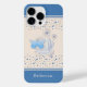 Künstlerischer Boho Schmetterling und botanischer Handykoffer - wählen Sie unser Gerät (viele zur Auswahl), mit hübscher Blues und Grau auf einem beigen Hintergrund, der leicht mit Ihrem Namen personalisiert ist. Sehr stilvoll!