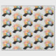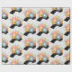 Umschlagpapier mit einer Aquarell-Abbildung einer orangefarbenen Kamera mit Blumenstrauß und einem schwarz-weiß gewellten Filmstreifen.
