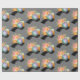 Umschlagpapier mit einer Aquarell-Abbildung einer orangefarbenen Kamera mit Blumenstrauß und einem schwarz-weiß gewellten Filmstreifen.