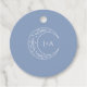 Fügen Sie Ihren Favoriten eine Touch himmlischen Charmes mit den Tags der Gastgeschenk Hochzeit Boho Celestial hinzu. Vor einem staubblauen Hintergrund verleihen der Halbmond und die Sterne, gepaart mit den stilvoll einfachen, anpassbaren Initialen des Paares, ein Gefühl von Magie. Elegante Blätter, die die unendliche Verbindung zwischen Ihnen und Ihren Gästen symbolisieren.