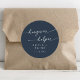 Dieser schicke dunkelmarineblaue Kater mit klassischem Rundaufkleber eignet sich perfekt für eine minimalistische Hochzeit. Das modisch-neutrale dunkelblaue, moderne böhmische Design zeichnet sich durch eine einfache rustikale Kalligraphie mit einem einzigartigen und dennoch klassischen Stil aus. Personalisieren Sie Ihre Gunst-Aufkleber mit Ihren Namen und Hochzeitsdatum.