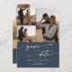 Diese schicke, dunkelmarineblaue Multi-Foto QR-Code Save the Date-Karte eignet sich perfekt für eine minimalistische Hochzeit. Das modisch-neutrale dunkelblaue, moderne böhmische Design zeichnet sich durch eine einfache rustikale Kalligraphie mit einem einzigartigen und dennoch klassischen Stil aus. Personalisieren Sie Ihre Save the Date mit Ihren Namen, Hochzeitstermin, Ort, 4 Verlobungen Fotos und einem QR-Code, der auf Ihre Hochzeitswebsite verlinkt.