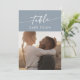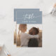 Diese schicken, staubblauen Foto-Tischnummern sind perfekt für eine minimalistische Hochzeit. Das neutrale hellblaue graue moderne böhmische Design zeichnet sich durch eine einfache rustikale Kalligraphie mit einem einzigartigen und dennoch klassischen Stil aus. Das Design druckt vorne und hinten. Passen Sie Ihre Tischnummern mit einem benutzerdefinierten Tischnamen und Foto an; ideal für ein Reisethema! Personalisieren Sie jede Tischnummer, die Sie benötigen, und fügen Sie jede einzeln in Ihren Warenkorb ein.
