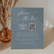 Dieses schicke, staubige Blau teilt sich das QR-Zeichen der Liebe und eignet sich perfekt für eine minimalistische Hochzeit. Das neutrale hellblaue graue moderne böhmische Design zeichnet sich durch eine einfache rustikale Kalligraphie mit einem einzigartigen und dennoch klassischen Stil aus. Geben Sie Ihre Webadresse in den QR-Code-Bereich der Vorlage ein, und der QR-Code aktualisiert und verlinkt automatisch auf Ihre Website. Personalisieren Sie das Zeichen mit Ihrem Hochzeitshashtag für das Teilen von Fotos auf sozialen Medien.