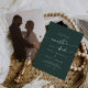 Dieses elegante smaragdgrüne Foto ist eine spanische Hochzeitsveranstaltung, die für eine minimalistische Hochzeit geeignet ist. Das dunkle und launische Jägerwald grün moderne böhmische Design bietet einfache rustikale Kalligraphie mit einem einzigartigen und dennoch klassischen Stil. Personalisieren Sie die Rückseite Ihrer Hochzeit laden Sie mit Ihrem Lieblings-Verlobung-Foto ein.
