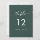 Ces numéros de table boho chic vert émeraude vert mariage sont parfaits pour un mariage minimaliste. Le design bohème moderne et moderne de la forêt de chasseurs, sombre et maussade, se compose d'une calligraphie rustique simple au style unique mais classique. La conception s'imprime à l'avant et à l'arrière. Customisez vos numéros de table avec vos noms et votre date. Personnalisez chaque numéro de table dont vous avez besoin, en ajoutant chacun à votre panier individuellement.