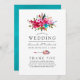 Boho chic rosa und türkisblau Aquarell Blumensträuße Hochzeitskarten entwickelt, um schnell und einfach auf Ihre Event-Besonderheiten anpassen.