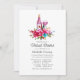 Boho chic pink und türkisblau Aquarell Blumenwein toasting virtuell Braudusche Einladung.