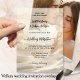 Elegante boho chic Vellum Hochzeitseinladung mit einem abstrakten goldenen Funkeldesign (gedruckt). Die hellen Glitzern verleihen dieser Einladung einen feierlichen und feierlichen Charakter. Bitte beachten Sie, dass ein Foto oder ein anderer Hintergrund separat erworben werden muss.